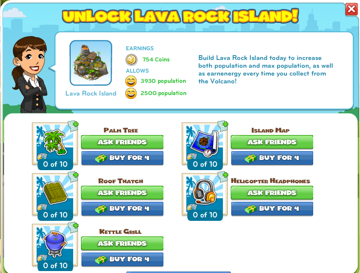 Build Lava Rock Island for explosive rewards including energy, population and population allowance