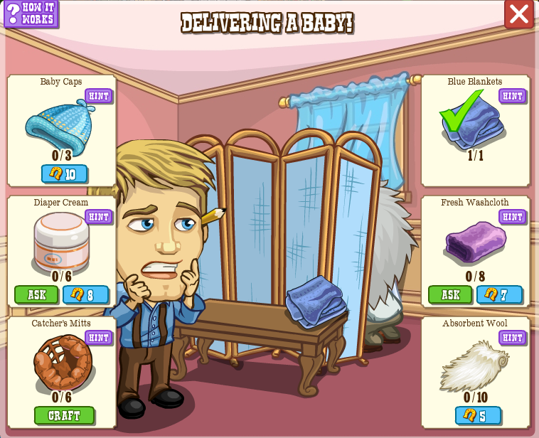 Reward: 400 XP, 3 Pink Beets, Blue Blanket (needed for maternity cntr)
