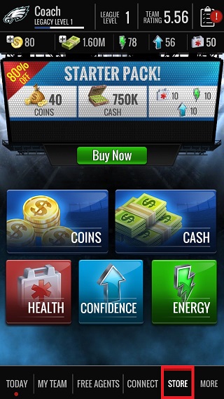 You already know that if you want to have the best team, you need the best players, a healthy team and a motivated one too. In the Store, you can buy Coins, Cash, Health packs,Confidence boosts and Energy. These are the little things that will help your team get one step closer to the championship.