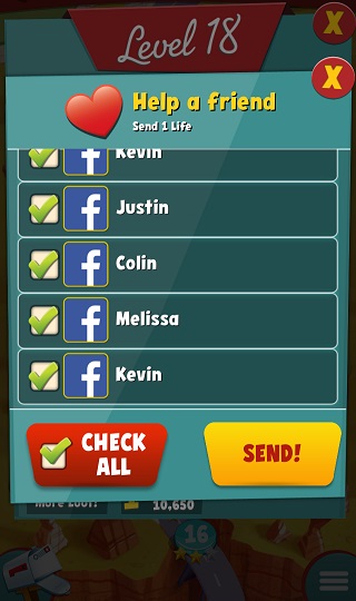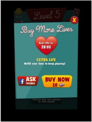 Out of Life/Heart? Now, let's get some! There are three ways to replenish it. You can either wait for it, purchase it, or have a friend send you one (only available once Facebook connected).