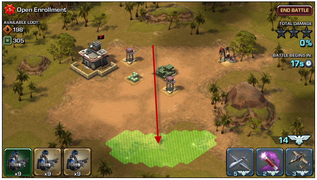 Deploy - To deploy your Troops, tap the Troops that you want to deploy, then the Landing Zone. Each squad deploys separately.